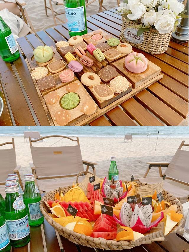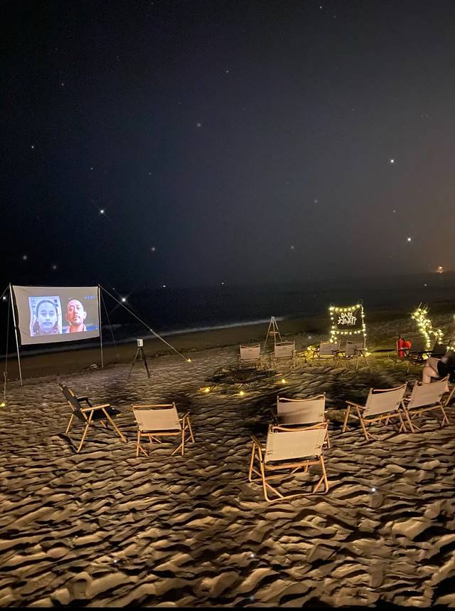 晚餐之后吹着海风大家可以坐在海边看电影喝酒聊天玩游戏~