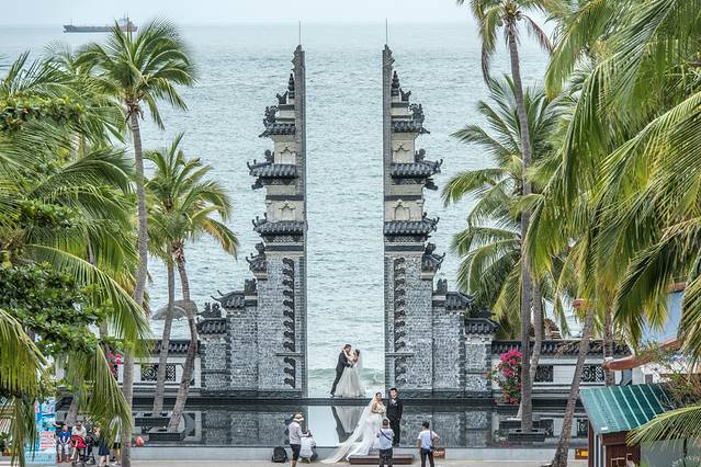 在大小洞天除了优美的海滩风光之外,还有充满着浪漫主义色彩的画面。在这里能看到很多新人在此取景拍摄,看到恋爱无比的新人们的笑容,你们难道不觉得很浪漫吗?从景区正门进入即可看到一处海神之门,颇具东南亚色彩,而建筑风格则是采用中国古代传统的徽派建筑,这也太美了吧?