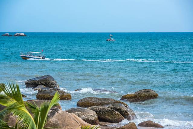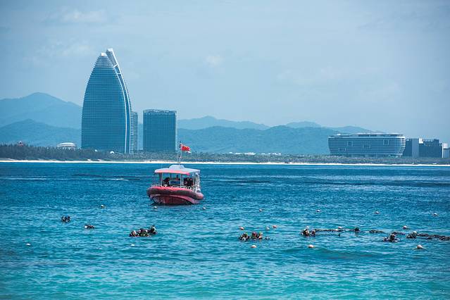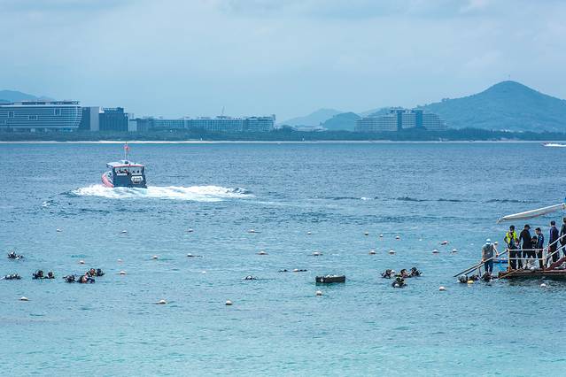 在蜈支洲与海棠湾之间来来往往的船上写着“中国有个海南岛,海南有个蜈支洲”,乍一听有点言过其实,实际这个总结很真实客观。海面上各种船只与潜水玩家们构成了热带海岛的气息,这种感觉比出国玩海岛更有意思。