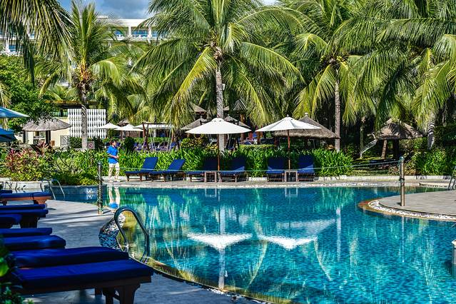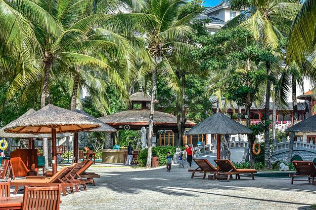 三亚湾、大东海、亚龙湾、海棠湾与崖州湾是三亚五大发展成熟的旅游片区,它们虽然是风光大同小异,但是玩点与环境却不完全相同。海棠湾是三亚仅次于蜈支洲岛与亚龙湾之后海滩最干净的旅游片区。早在几年前还是荒芜之地,因为人烟稀少,所以海水品质不错。水质好、客流少成就了安静闲适的度假环境,慢慢的成为三亚最具代表性的海滨旅游度假区,同时也是世界级的度假胜地。发达的旅游市场催生出很多旅游配套设施的发展,除观海公路、免税店之外,还有度假村级的奢华型酒店。今天山野君就分享2018年在海棠湾旅游度假的一家五星级酒店,设施比较老旧,但是环境好、拥有绝佳的海滩以及高性价比的房费,成为人们喜欢的理由。