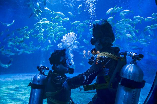 潜水除了设备齐全、专业教练带领之外,还需要强大的心理素质,因为海底下的场景有点吓人,不同于海面上。况且这还只是有人工管理的一部分都这么阴森了,何况那些非人工管理的海底区域呢?如此看来潜水还是一个很不简单的运动项目。