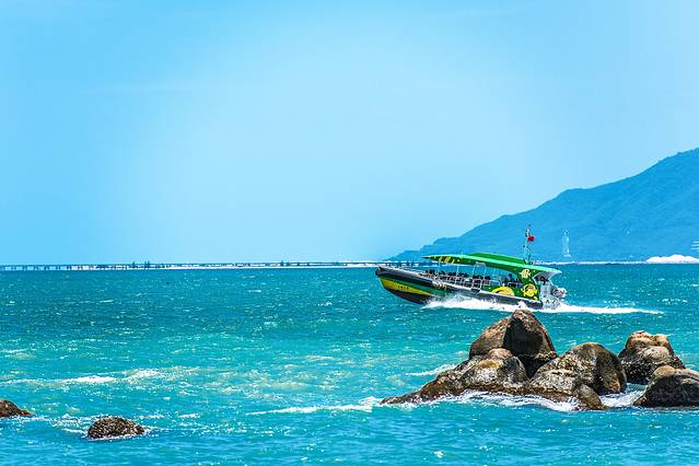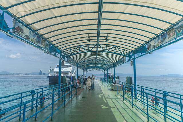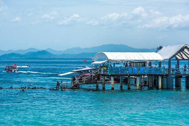 蜈支洲岛处三亚市最美三大海滩之首,与三亚本岛相对独立,仅有乘坐游轮方可抵达。蜈支洲岛主要分为冬季码头与夏季码头,船只会根据不同的季节而停靠不同的码头,然而相隔码头相隔的也不远。可是天气好的情况下,码头都能成为一道靓丽的风景线。