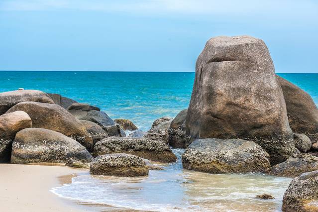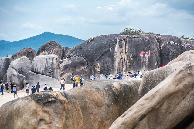 三亚本来就是一个很浪漫的海岛城市,到大小洞天一定要带着心爱的人一起畅游,享受一下自然与人文的美!寻找一块巨石慢慢地观赏海景,此时的海滩巨快要被海浪淹没了,坐在石头上的山野君仿佛坐在神龟上畅游南海,感觉真的好好!