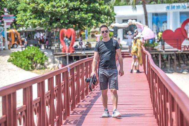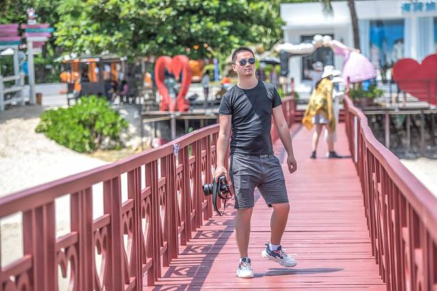 三亚的海水本身就非常不错,加上绝佳的天气成就了中国最美海景。天气好、景色也好,人的心情会更好,很多人都乐意在情人桥上拍照留恋,就连山野君这种土直土直的农村小伙也喜欢到这座步行桥上拍照。来蜈支洲岛上拍照的话,山野君建议大家一定要带上摄影器材,其中广角镜头与长焦镜头一定要有。山野君的镜头是14-24的广角与70-200的长焦,这两个镜头基本上满足绝大部分的拍摄,并不留遗憾。