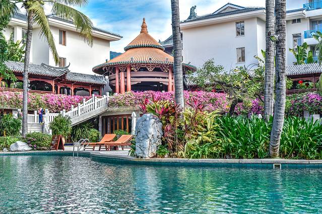 花园式的酒店环境营造出古代皇家宫殿后花园的氛围,颇具贵族的大气感。山野君刚开始以为中式风格的酒店只会出现在江南地区,其实不然!在三亚这座热带海岛城市的中式酒店显得有一些新颖别致,你们觉得呢?