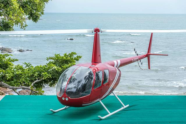 大小洞天的景色好,取景的点非常多,为了增强拍婚纱的浪漫氛围,在海滩边还有一处用作取景拍照的直升机。开启直升机畅游在海面之上,这种画面是何其的浪漫?大家可以想象一番!
