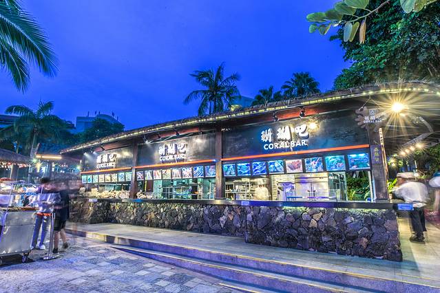 为了营造出更好的就餐氛围,珊瑚吧还配有音乐以及现场表演活动。在中国最美的热带海岛上度假,一边享受海风与美食,这也太爽了吧?
