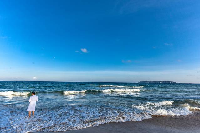 大海是三亚最灵动的背景也是最为壮阔的前景,蓝天下的海洋风光美得令人陶醉!当海浪吹拂后,拍打在沙滩上的石头的那一瞬间,真不知道该如何去形容它的美了。
