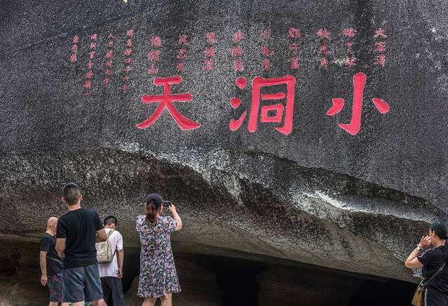 大小洞天的自然风光本来就很美,可是处处都有拍婚纱的新人,有了婚纱拍摄的取景,才衬托出大小洞天的浪漫主义色彩的场面。畅游于此,也许你的心花都会怒放,这种杂糅着自然与人文的美确实很有感觉。山野君一边游览一边拍照,顿然也想当新郎被人拍了,哈哈!