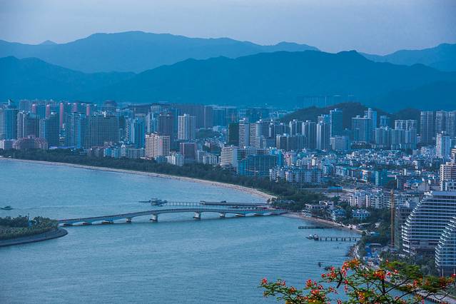 在鹿回头最高观景台可以鸟瞰三亚市区最大的人工岛风光,大名鼎鼎的凤凰岛与南海邮轮集散中心的街景尽收眼底,颇为壮观。山野君超喜欢这种视角,于是拿起长焦镜头拍下这一场景,你们喜欢不啦?