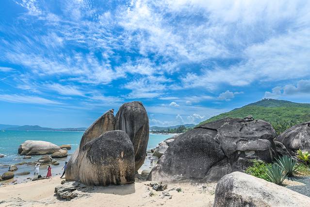 天涯海角最出名的就是石头,各种各样的石头颇具特色。洒落在沙滩上的石头与海之尽头组合在一起,美得不可言喻!海滩品质好、沙子柔软。来这里一定要携带一双沙滩鞋,或者是拖鞋步行非常舒服、惬意。所以,山野君要说天涯海角很值得一游。