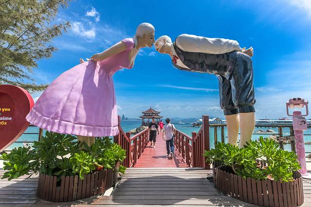 情人桥一定要情人才能上去吗?当然不是了!大家不要误以为情侣们才有资格上这座桥,也不要以为是一座网红步行桥而放弃游览。它是蜈支洲岛上拥有最佳观海景的步行栈道,来蜈支洲到一定要到这座步行桥看一看。之前我一直在寻找蜈支洲岛最佳观景点,没想到居然隐藏在这座看似普通的网红步行桥上。