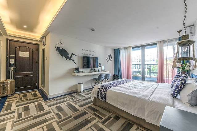 山野君选择的是观海景房,在房间内或者躺在床上即可欣赏蜈支洲岛的海景,在这里才能让你体会什么才是真正意义上的海岛度假生活。故而,山野君临时将蜈支洲岛的度假生活有2天变更为3天。