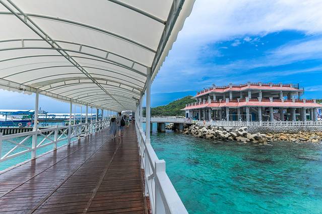 天气晴朗的三亚有着东南亚海岛一样的景色,蜈支洲岛是三亚最美海岛,而珊瑚广场则是蜈支洲最佳观景区域,身处夏季码头上看珊瑚广场就像到了东南亚海岛城市一样颇具热带海洋城市的风情,你们喜欢不啦?