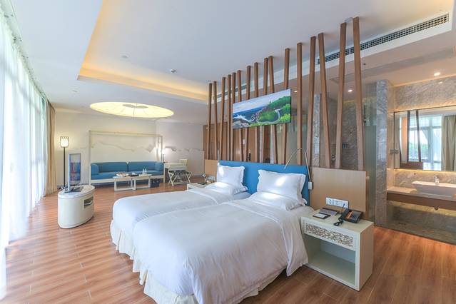 山野君是带我的“葡萄酒”来三亚度假的,所以选择了标准间的套房。当我进入房间,被如此宽敞明亮的空间所震撼到,在寸土寸金的蜈支洲岛上客房的面积大的超乎想象。
