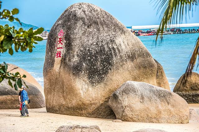 不知道你们还记不记得2元钱的纸币呢?它的背景图就是这块巨大的石头,这块石头早在清宣统年间被视作海南最大的海边石块,故取名为南天一柱。南天一柱上有宣统皇帝的题词,如此看来这块石头还有一定的历史故事呢。