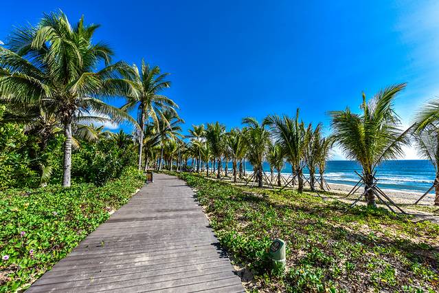 相比较其它海湾来说,海棠湾更为安静舒适,在这里度假是一个明智之举。蓝天白云下的海棠湾美如画,你相信这是在一家酒店公共区内拍摄到的照片吗?这里就是海棠湾最早一批开业的酒店,虽然设施很老旧,但是海滩非常棒!