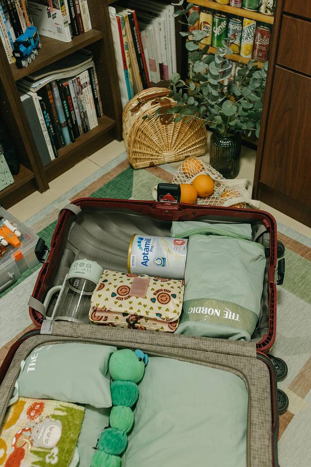 我起身帮狍哥冲了一杯澳洲爱他美奶粉,睡前必备。狍哥边喝着奶边看我整理明日出行的行李。