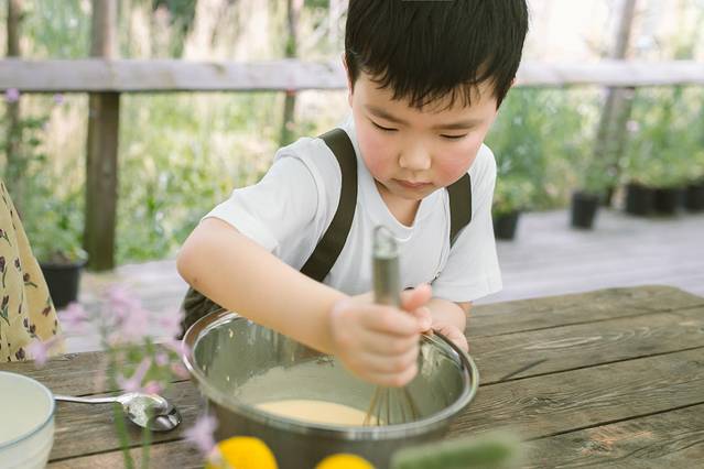和狍哥一起体验如何制作冰淇淋咯~首先先让狍哥认识材料,牛奶,鸡蛋,淡奶油,红糖,咦?这碗白色的是什么?带着好奇,按照工作员姐姐的提示,狍哥用小手伸向碗里点了下,放进小嘴馋了馋,“哦~哦~是盐巴!” 狍哥大声说道。