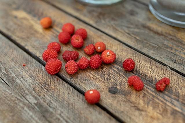 隔壁帐篷的阿姨一早摘的莓果,吃了几颗挺甜的。