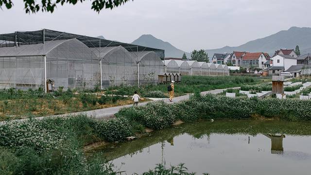 走过蔬菜园,这里还有好多蔬菜大棚。