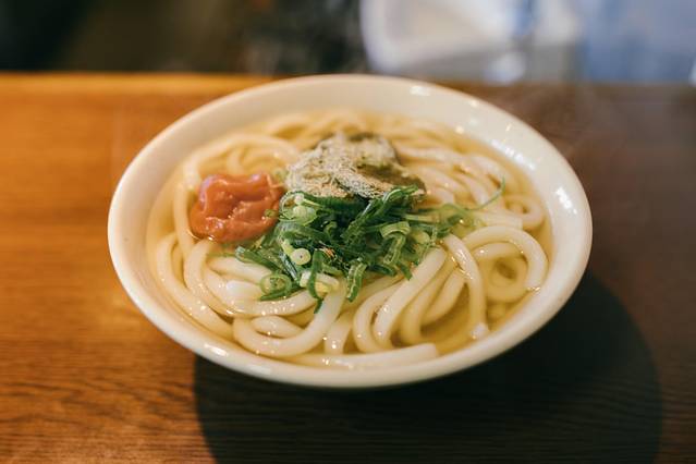我和衣刀分别点了牛肉面和梅子乌冬面。猜猜看谁是肉食主义者?