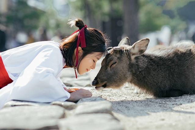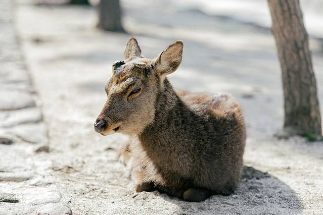 一到宫岛就能见到路上可爱的小鹿啦~快来和它们打个招呼吧!