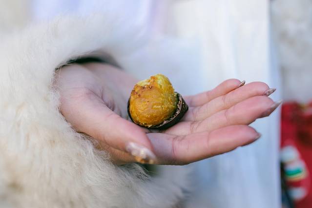 这么大的烤板栗我第一次见,好奇心的促使下买了一小袋,赶紧掰开看看,金黄色一大颗,口感比较绵,但是没有我想象的那么好吃,板栗还是我家附近的好好栗子嗲,香甜软糯。