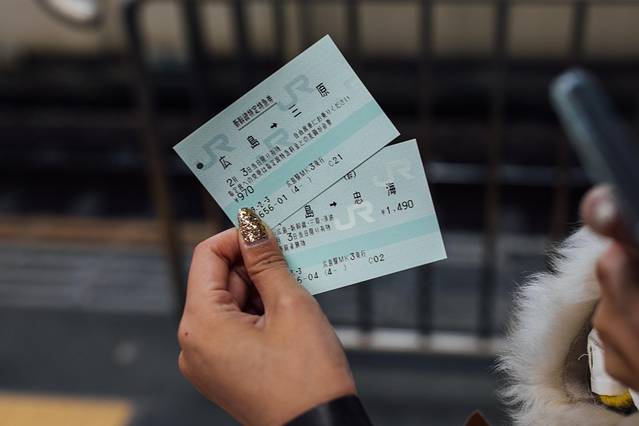 到达JR站,乘坐新干线从广岛出发到三原再到忠海,两人费用加起来4920日元。