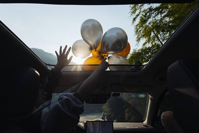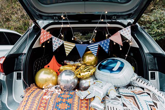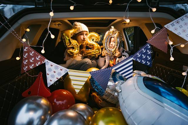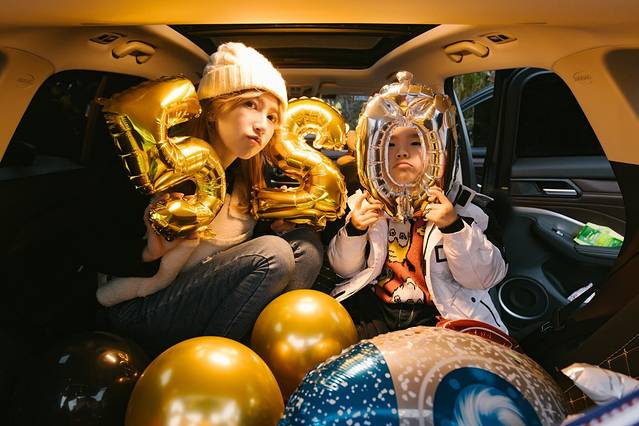 精洗过后,又想感叹银色车身真的太美了!配上金色和银色的气球,绝了!如果时间来得及,我应该把整个后备箱都放满气球,那效果肯定更棒了!下次下次,这次时间太仓促了。下次选个温暖的季节郊游~