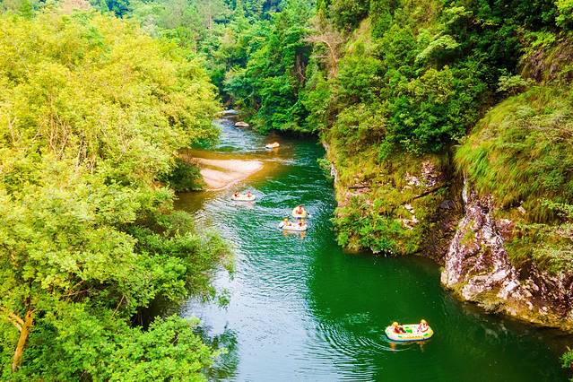 DAY2:上午走进龙湾潭国家森林公园,体验透明小船、魔鬼秋千、探险高空自行车、玻璃漂流等网红项目,领略“温州小冰岛”;下午乘坐竹筏漂流泛舟楠溪江。