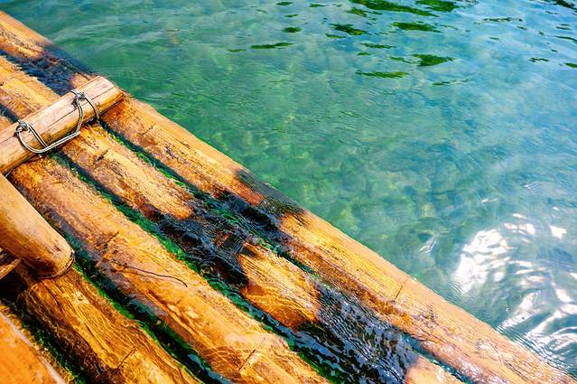 从龙湾潭国家森林公园赶到码头后,就迫不及待地上了竹筏,开启了漂流之旅。