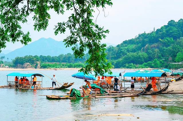 一条竹筏可以坐6个人,全程1.5h-2h,若是感觉时间比较久,也可以让竹筏师傅启动马达,顺便还可以感受下在江面上“乘风破浪”的刺激。另外,在竹筏上还设有茶桌、茶具,沿途边赏景边喝茶,那感觉自然十分惬意舒服。