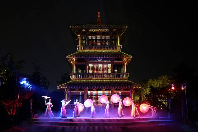南湖的晚上可以看水景灯光秀和《那年芳华》,多媒体技术和光影艺术,全新创构了观演融合、五位一体、深度体验的文旅模式, 表现了评腔乐舞与炫美光影的交融胜境,诠释了 唐山 百年文脉源流的精神内涵,突出展现了那年那时梨园人的家国情怀与梨园情义。