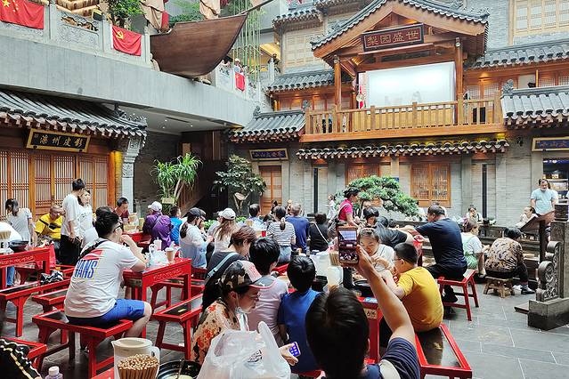 在文化创新这一趴、觉得还是挺过硬的,远超我对唐山的刻板印象。对了,来这儿还有很多美食可以吃。接下来开启逛吃模式,逛吃、逛吃、逛吃~炸鸡柳、柳枝大肉串、还有10元一碗的冰粉、19元的羊汤泡饼......还有很多特色小吃,价格也很接地气。