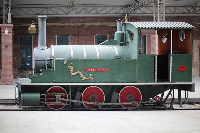 室外展区的火车车头可不止一种型号,那真是多种型号、多种款式,特别适合拍照打卡。我拍的这张是“ROCKET OF CHINA”中国火箭号,因当时的中国工匠看图纸建造机车时在车头两侧镶嵌了金属刻制的龙,因此这台又叫“龙号机车”,眼前就是中国第一台蒸汽机车的一比一尺寸的复刻版。