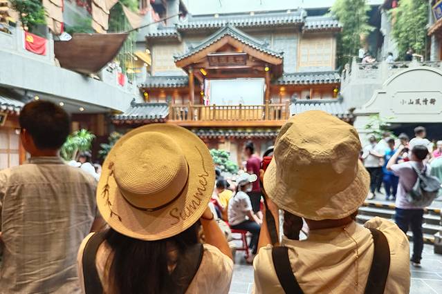 外部环境看起来绝对的一线水准,据说每天接待1-3W人。超级大的免费停车场,感觉就是给自驾来玩的我们准备的。从正门进去,左右两侧大褂打扮的两位大哥,用地道的 唐山 腔调喊着:“喜欢~您~来~”趣味的时刻就此开始。