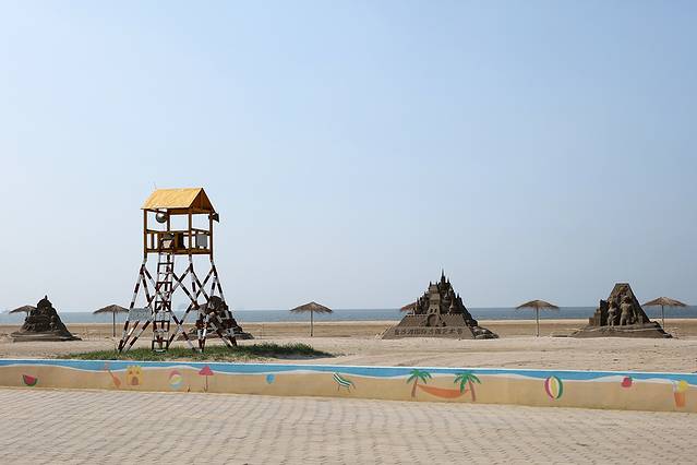祥云湾:一抹阳光一抹蓝,祥云湾景区海水澄澈、阳光灿烂,遍地是金黄的细沙,当地人也称金沙滩。这是一个可以陆路登岛的小岛,曾举办过“金沙滩国际沙雕艺术节”还有很多加固的作品沿海岸线展示着。岛上还有星空帐篷和童话小屋正在建造,相信再去时就可以住在童话世界里了。