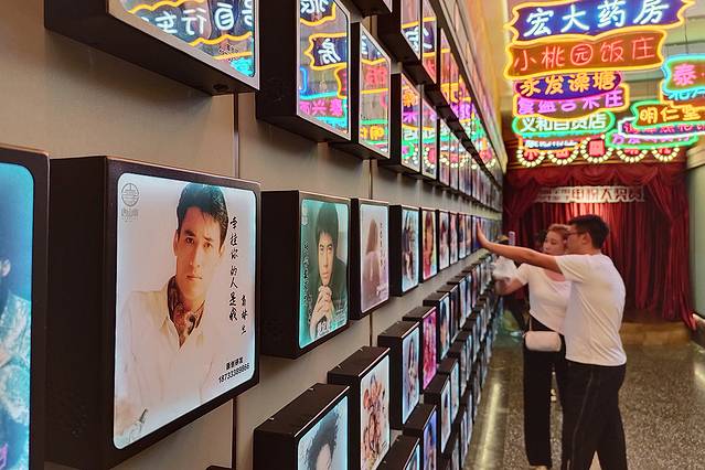 一层还有一个最好玩的区域,不知道叫什么名字、姑且就叫触发式听老歌装置吧。手放在对应的歌名歌手上面,就会发出相同的音乐。老歌新歌都有,这里拍照很容易穿帮。因为你不知道下一秒谁的手又放上来了。非常好玩,强烈推荐。