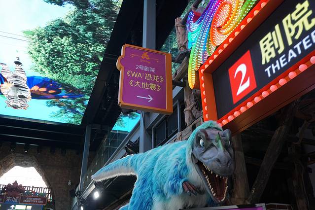 二号剧院是亲子秀《WA!恐龙》和5D大型实景体验剧《大地震》的表演场地,凭任何一种套餐票,都可以观看《大地震》,观众可以参与其中,亲身感受5·12地震的伤情和华夏儿女众志成城,抗震救灾的感人回忆。