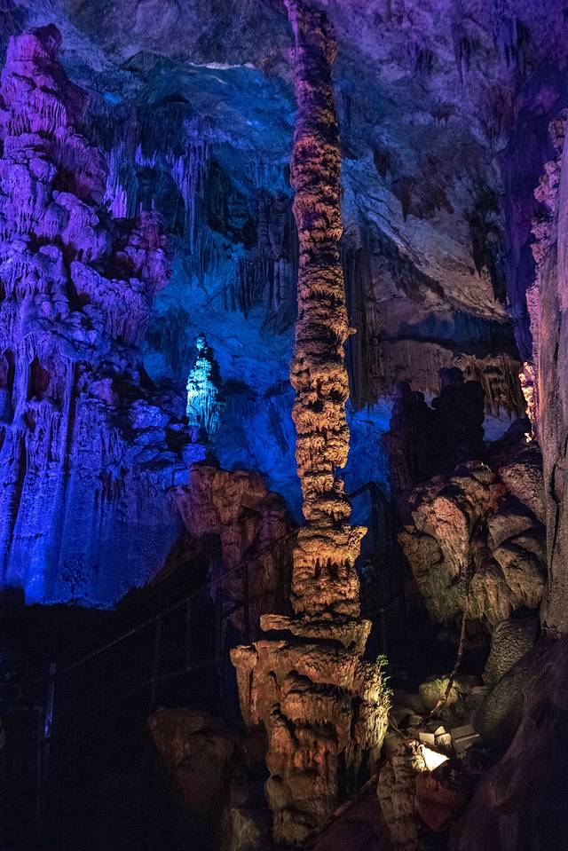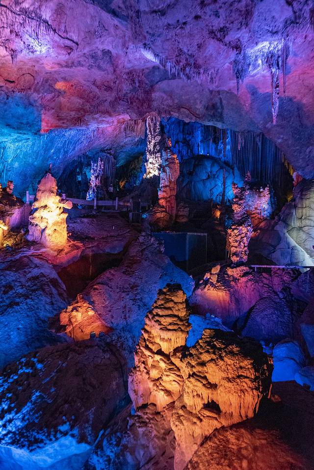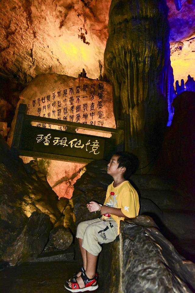 洞内钟乳石密布,有崖、有地、有潭、有穴,在灯光和投影的映射下,美轮美奂宛若仙境,清朝时有人将此地称为瑶琳仙境,一直称呼至今。这是一个特别适合带娃来旅游的地方。钟乳石历经亿年变幻,形态各异------这也是一个让人充满想象力的地方,许多家长会带着孩子来此避暑。
