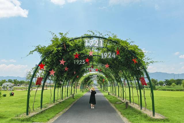 荻浦花海是一个以火车为题材的乐园。门口是一列火车,园区内又有一列行驶环游的小火车,里面还有诸多游乐项目,是一个适合公司拓展、亲子旅游、拍照打卡的网红旅游地。