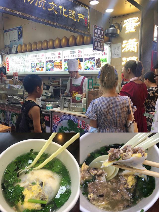 非遗美食蛋满灌,鸡蛋里包肉馅,味道和脑补的一致,谈不上美味,出于猎奇可以一试!当然排队是必须的。