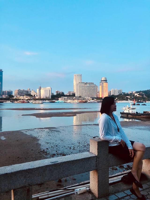 饱餐后沿街向码头处溜达,偶然发现一个观景平台,具体名字记不住了,位于金门游船码头对面,离八市很近,没什么游客,我也只是偶然发现。登高望远,景色不错。