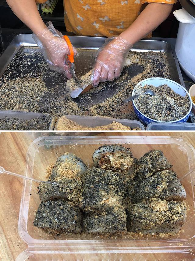 出于猎奇心理,在八市随机找了一家店,打包了一份油条麻糍。油条外裹上粘粘的糍耙,淋上芝麻面的口感,和我之前脑补的味道差异不大,不适合我的口味。