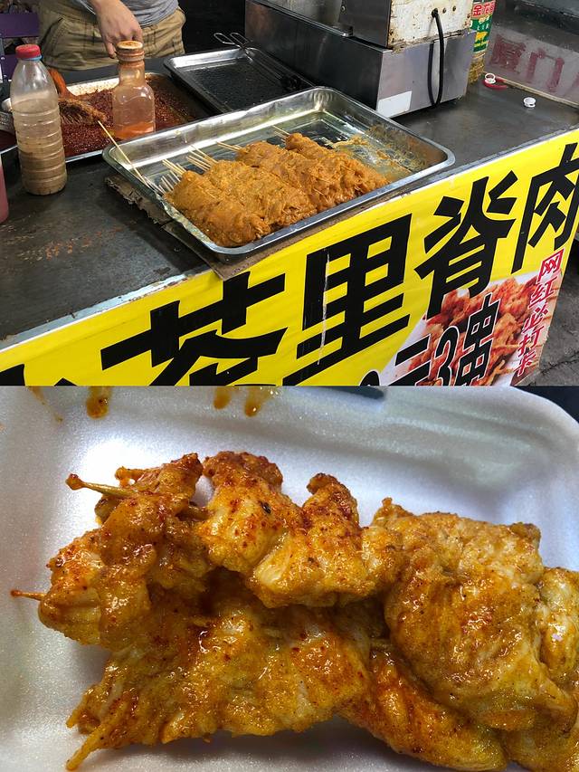 沙茶里脊肉串是用里脊肉切片加入沙茶酱等腌制后油炸而成,对于吃东北烤串长大的人来说,味道算不上惊艳,本着尝鲜的原则可以一试。