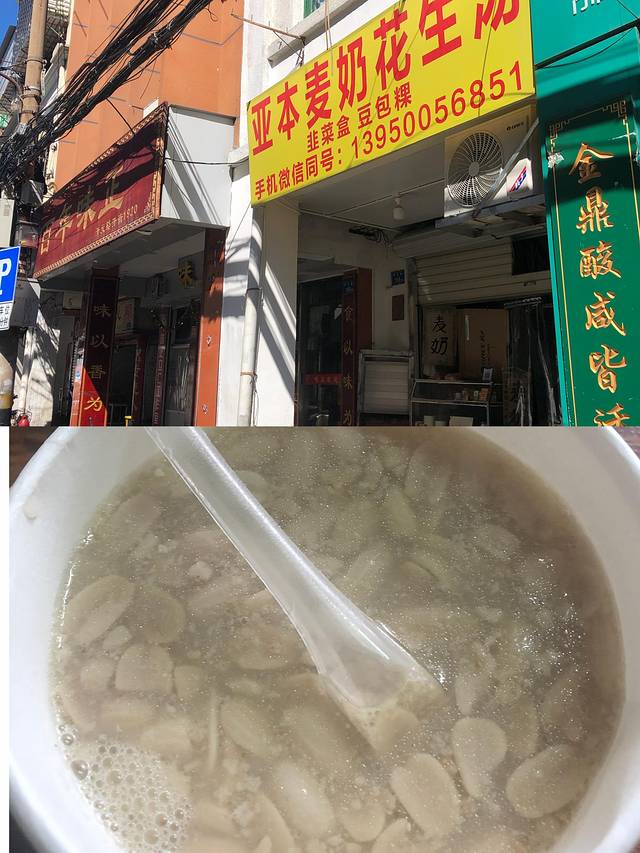这是家极小的店,里面只容纳2张小桌,招牌是麦奶和花生汤,饮品可以选择冰的或热的。建议喝热的!麦奶和花生汤口味都不错,个人更偏爱花生汤,清香解暑,价低质优,五颗星!