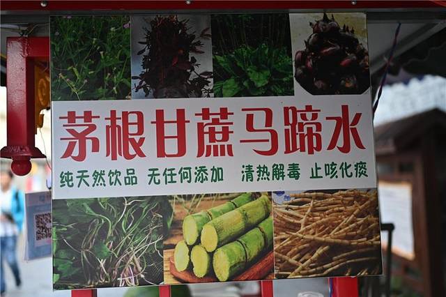 在三街两巷,还有区别于文艺范的各类美食,街道上,一个个小吃摊排列整齐的在路上,梨膏糖由舌尖甜到心里,铁板烧香飘十里,然后我还是喜欢路上卖的茅根甘蔗马蹄水,卖这个的老板说喝了可以生津止渴,去火,夏天买一杯来喝下对身体非常好……