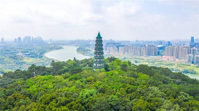 位于南宁市青秀区青山路19号的青秀山气候宜人,奇山异卉,景点众多,很远的地方就可以见到 一塔矗立在青秀山,就是青秀山的象征,九层高的宝塔高60米,相当于二十层高楼,里面207级旋转梯,是广西最高的塔。就是龙象塔了。,远处看去,青砖碧瓦可以俯瞰南宁琅东新城景色。龙象塔稳稳的驻扎在青秀山山顶,也驻扎在我心里。