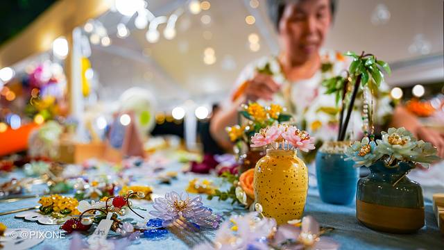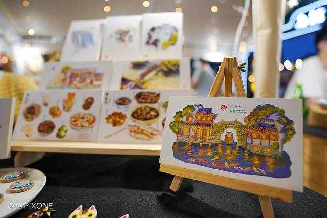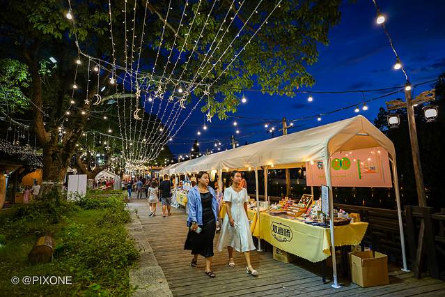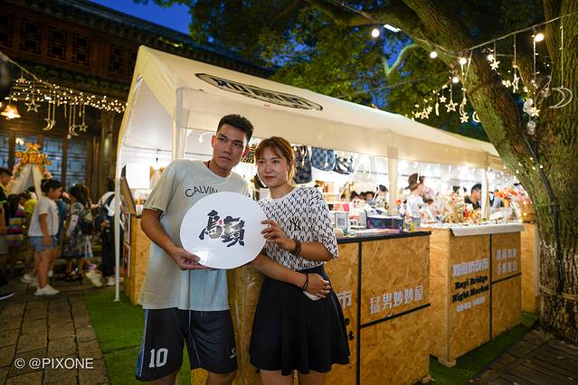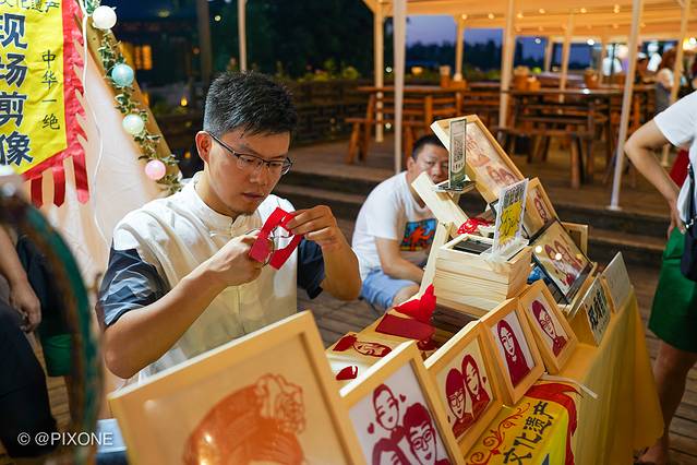 天还没黑的时候,夜市的灯光就开始亮起来了,游客们也陆续到达,这儿有各种风味美食、夜宵、以及一些文创艺术,还有几个非遗传承,比如人像剪纸,简直比照片还惟妙惟肖。